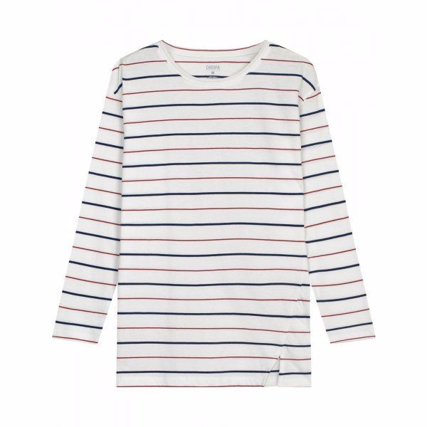 - Form áo vừa vặn, nhấn nhá thêm phần thân và tay có bo gấu cùng họa tiết sọc khác màu trẻ trung vô cùng thu hút